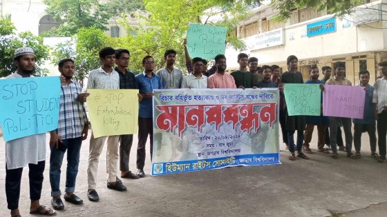 বিচারবহির্ভূত হত্যা এবং ‘মব জাস্টিস’ বন্ধের দাবিতে জগন্নাথ বিশ্ববিদ্যালয়ে (জবি) মানববন্ধন করেন শিক্ষার্থীরা। শুক্রবার (২০ সেপ্টেম্বর) বাদ জুমা বিশ্ববিদ্যালয়ের শহীদ মিনার চত্বরে এর আয়োজন করে শিক্ষার্থীদের সংগঠন হিউম্যান রাইটস সোসাইটি।