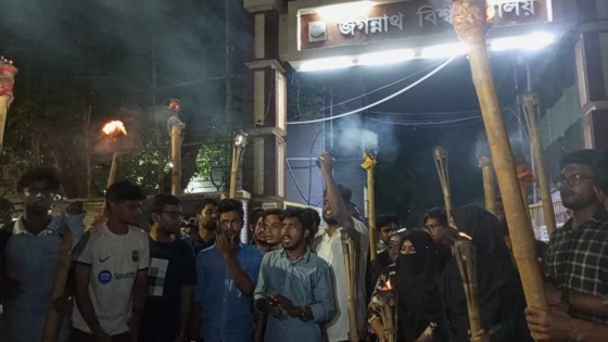 ঢাকা বিশ্ববিদ্যালয় ও জাহাঙ্গীরনগর বিশ্ববিদ্যালয়ে সংঘটিত মব জাস্টিস ও বিচার বহির্ভূত হত্যাকাণ্ডের সুষ্ঠু তদন্তের মাধ্যমে দৃষ্টান্তমূলক শাস্তির দাবিতে মশাল মিছিল করেছেন জগন্নাথ বিশ্ববিদ্যালয়ের শিক্ষার্থীরা। এসময় তারা পাহাড়ে সংঘটিত অরাজকতারও সুষ্ঠু তদন্ত ও বিচার দাবি করেন।