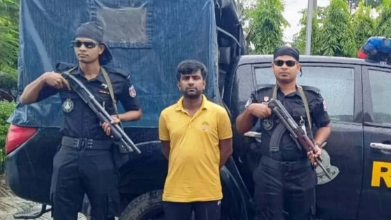 মঙ্গলবার (২৪ সেপ্টেম্বর) রাত দেড়টার দিকে নরসিংদীর রায়পুরা থানাধীন এলাকা থেকে র্যাব-৯ ও র্যাব-১১ যৌথ অভিযান চালিয়ে তাকে গ্রেপ্তার করে।