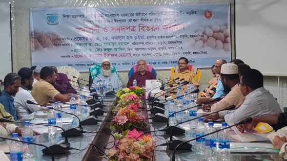 প্রধান অতিথি অধ্যাপক ড. এ কে ফজলুল হক ভূঁইয়া বলেন, বাংলাদেশ কৃষি বিশ্ববিদ্যালয় প্রতিষ্ঠার পর থেকেই দেশের কৃষি উন্নয়নে গুরুত্বপূর্ণ ভূমিকা পালন করে আসছে। কৃষি গবেষণা ও উদ্ভাবনী শিক্ষার মাধ্যমে বিশ্ববিদ্যালয়টি দেশের খাদ্য নিরাপত্তা নিশ্চিত করতে এবং অর্থনৈতিক উন্নয়নে বিশেষ ভূমিকা রাখছে। বিশেষ করে প্রাণিসম্পদ ও পোল্ট্রি খাতে বিশ্ববিদ্যালয়ের গবেষণা ও প্রশিক্ষণ কার্যক্রম খামারিদের জন্য নতুন দিগন্ত উন্মোচন করেছে। আজকের এই প্রশিক্ষণ কর্মশালার মাধ্যমে অংশগ্রহণকারী ৩০ জন খামারি নিরাপদ, পুষ্টিকর এবং মানসম্পন্ন মাংস ও ডিম উৎপাদনে অগ্রণী ভূমিকা পালন করবেন বলে আমি আশা করি। তাদের অর্জিত জ্ঞান ও দক্ষতা দেশের পোল্ট্রি শিল্পে ইতিবাচক পরিবর্তন আনবে।