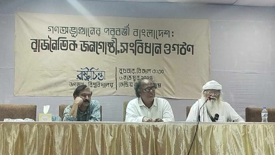বুধবার (০৬ নভেম্বর) বিকাল ৪টায় জগন্নাথ বিশ্ববিদ্যালয়ে কেন্দ্রীয় মিলনায়তনে ‘রাষ্ট্রচিন্তা’ আয়োজিত ‘গণঅভ্যুত্থান পরবর্তী বাংলাদেশ : রাজনৈতিক জনগোষ্ঠী, সংবিধান ও গঠন’ শীর্ষক আলোচনা সভায় তিনি এ কথা বলেন।