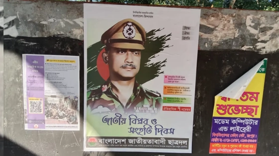 বুধবার (৬ নভেম্বর) সরজমিনে ঘুরে দেখা যায়, ঐতিহাসিক ৭ নভেম্বর জাতীয় বিপ্লব ও সংহতি দিবস উপলক্ষে ছাত্রদল বিশ্ববিদ্যালয়ের বিভিন্ন জায়গায় পোস্টার লাগিয়েছে।