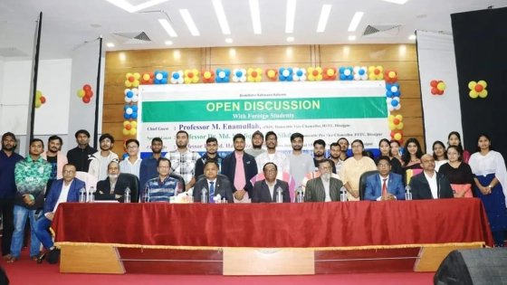 ইন্টারন্যাশনাল অ্যাফেয়ার্স সেকশনের আয়োজনে হাবিপ্রবিতে অধ্যয়নরত নেপাল, ভুটান, ভারত, সোমালিয়া ও নাইজেরিয়াসহ ৫টি দেশের শতাধিক বিদেশি শিক্ষার্থীর সঙ্গে বিশ্ববিদ্যালয়ের উপাচার্যের এ মতবিনিময় সভা অনুষ্ঠিত হয়। এতে প্রধান অতিথি হিসেবে উপস্থিত ছিলেন বিশ্ববিদ্যালয়ের উপাচার্য অধ্যাপক ড. মো. এনামউল্যা। বিশেষ অতিথি হিসেবে উপস্থিত ছিলেন উপ-উপাচার্য অধ্যাপক ড. মো. শফিকুল ইসলাম সিকদার।