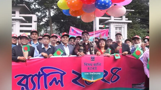 ডিসেম্বরের প্রথম দিনে ঢাকা বিশ্ববিদ্যালয় (ঢাবি) ক্যাম্পাসে মহান বিজয় দিবস উদযাপন উপলক্ষে একটি বর্ণাঢ্য বিজয় র্যালির আয়োজন করেছে প্রশাসন।