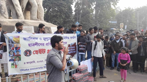 শনিবার (৪ জানুয়ারি) বেলা সোয়া ৩টায় টিএসসি রাজু ভাস্কর্যের পাদদেশে ‘ঢাকা ইউনিভার্সিটি স্টুডেন্টস রাইটস ওয়াচ’ নামে এক প্ল্যাটফর্মের আয়োজনে এ কর্মসূচি পালন করা হয়।