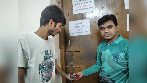 রোববার (১২ জানুয়ারি) বিকেল ৩টা ৪০ মিনিটের দিকে উপাধ্যক্ষের রুমে তালা ঝোলান শিক্ষার্থীরা। এর আগে বিকাল তিনটা থেকে প্রশাসনিক ভবনের সামনে জড়ো হতে থাকেন তারা।
