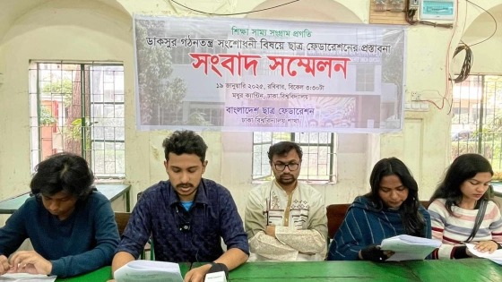 ঢাকা বিশ্ববিদ্যালয়ের ছাত্র ফেডারেশনের আহ্বায়ক আরমানুল হকের সভাপতিত্বে সংবাদ সম্মেলনে প্রস্তাবনা তুলে ধরেন সাধারণ সম্পাদক সাকিবুর রনি।