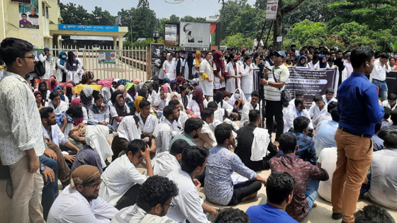 খুলনা মেডিকেল কলেজে (খুমেক) শিক্ষার্থী ও শিক্ষানবিশ চিকিৎসকদের আন্দোলন অব্যাহত রয়েছে।