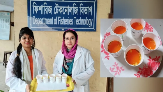 কার্প জাতীয় মাছের অব্যবহৃত অংশ দিয়ে ‘ফিশ স্যুপ পাউডার’ (মাছের বায়ুথলি দিয়ে) ও ‘ফিশ স্টক’ (মাছের পাখনা, ফুলকা, অপারকুলাম দিয়ে) তৈরি করে এসব খাদ্যদ্রব্যের গুণাগুণ পরীক্ষা করেছেন বাংলাদেশ কৃষি বিশ্ববিদ্যালয়ের (বাকৃবি) একদল গবেষক।