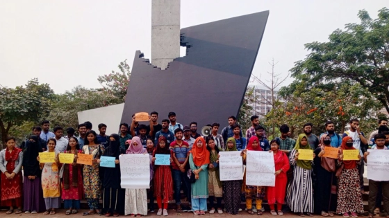গণিত বিভাগের শিক্ষার্থী আরজানা ইয়াসিন কামিনী বলেন, সারা দেশে ধর্ষণের মতো জঘন্য অপরাধ বেড়ে যাওয়ায় আমরা এখন নিরাপত্তাহীনতায় ভুগছি। আমরা বিশ্ববিদ্যালয় থেকে বাড়িতে নিরাপদে ফিরব কিনা তা নিয়ে সংশয়ে থাকি। দেশের প্রশাসনের কাছে দাবি, ধর্ষকদের সর্বোচ্চ শাস্তি মৃত্যুদণ্ড করতে হবে এবং ধর্ষকদের দ্রুততম সময়ের মধ্যে বিচারের আওতায় আনতে হবে। গণিত বিভাগের আরেক শিক্ষার্থী সাব্বির ইফতেখার শাকিব বলেন, চলতি ফেব্রুয়ারি মাসে আমরা বেশ কয়েকটি ধর্ষণের ঘটনা সংবাদমাধ্যমে জানতে পেরেছি। কখনো বাস ডাকাতি করতে এসে আমার মা-বোনদের ধর্ষণ, কখনো একুশে ফেব্রুয়ারির জন্য ফুল কুড়াতে গিয়ে ছোট বোন ধর্ষণ। কখনো বেড়াতে গিয়ে আমার বোন ধর্ষণ। চারিদিকে শুধু ধর্ষণের খবর পাওয়া যায়। কিন্তু ধর্ষকদের কোনো শাস্তির বিষয়ে জানা যায় না। আমাদের দাবি ধর্ষকদের একমাত্র শাস্তি প্রকাশ্য মৃত্যুদণ্ড করতে হবে।
