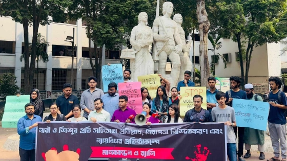 নারী ও শিশুর প্রতি সহিংসতা প্রতিরোধ, নিরাপত্তা নিশ্চিতকরণ এবং ন্যায়বিচার প্রতিষ্ঠার দাবিতে মানববন্ধন করেছে ঢাকা বিশ্ববিদ্যালয়ের (ঢাবি) ক্রিমিনোলজি বিভাগ।