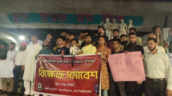 নওগাঁ মেডিকেল কলেজ বন্ধের পরিকল্পনার প্রতিবাদে বিক্ষোভ সমাবেশ করেছে ঢাকা বিশ্ববিদ্যালয় পড়ুয়া নওগাঁ জেলার শিক্ষার্থীদের সংগঠন ‘নওগাঁ স্টুডেন্টস অ্যাসোসিয়েশন, ঢাকা বিশ্ববিদ্যালয়’।