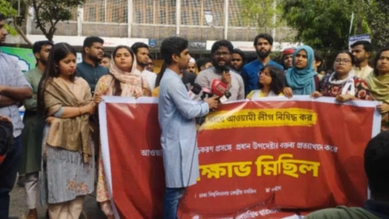 এর আগে আওয়ামী লীগ নিষিদ্ধকরণ প্রসঙ্গে প্রধান উপদেষ্টার বক্তব্যকে প্রত্যাখ্যান করে ‘গণহত্যার’ দায়ে আওয়ামী লীগ নিষিদ্ধের দাবিতে বিক্ষোভ মিছিল করে গণতান্ত্রিক ছাত্র সংসদ। মিছিলটি ঢাবির কেন্দ্রীয় মসজিদ থেকে শুরু হয়ে টিএসসি ঘুরে শাহবাগ দিয়ে ঢাবির কেন্দ্রীয় লাইব্রেরির সামনে এসে শেষ হয়।