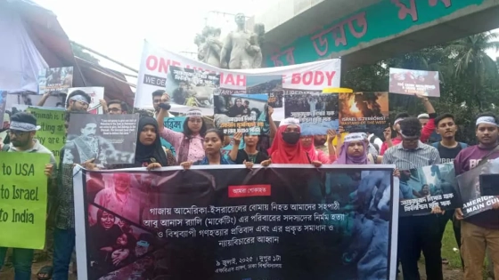 ফিলিস্তিনের গাজায় দখলদার ইসরায়েলের চালানো নৃশংস হামলায় ঢাকা বিশ্ববিদ্যালয়ের (ঢাবি) মার্কেটিং বিভাগে পড়ুয়া ফিলিস্তিনি শিক্ষার্থী আবু আনাসের পরিবারের সদস্যরা নিহত হয়েছেন। এই নৃশংসতার প্রতিবাদে বিক্ষোভ করেছেন ঢাবি শিক্ষার্থীরা।