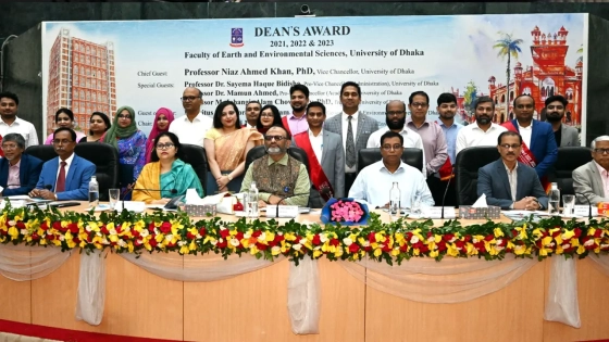 ঢাকা বিশ্ববিদ্যালয়ের (ঢাবি) আর্থ অ্যান্ড এনভায়রনমেন্টাল সায়েন্সেস অনুষদের তিন বছরের (২০২১, ২০২২ ও ২০২৩) ডিনস অ্যাওয়ার্ড প্রদান করা হয়েছে।