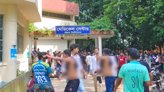 এ সময় হামলায় জড়িতদের বিচার দাবি করেন তারা। একপর্যায়ে ক্যাম্পাসের পাশে রাতের সংঘর্ষের স্থানে গেলে স্থানীয় লোকজনও লাঠিসোঁটা নিয়ে এগিয়ে আসেন। এতে উভয়পক্ষের মধ্যে উত্তেজনা দেখা দেয়।
