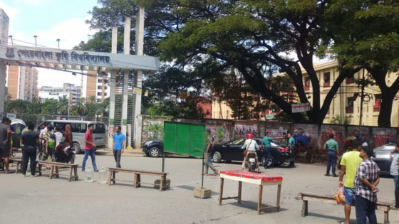 বিশ্ববিদ্যালয়ের প্রক্টর হারুন-অর-রশিদ জানান, শিক্ষার্থীরা সড়কে বেঞ্চ-চেয়ার ফেলে যান চলাচল বন্ধ করে দেন। প্রায় ১ ঘণ্টা পর বিশ্ববিদ্যালয় প্রশাসনের অনুরোধে সকাল সাড়ে ১০টার দিকে অবরোধ তুলে নেন তারা।