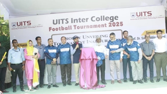 দেশের প্রথম তথ্যপ্রযুক্তি ভিত্তিক বেসরকারি বিশ্ববিদ্যালয় ইউনিভার্সিটি অব ইনফরমেশন টেকনোলজি অ্যান্ড সায়েন্সেস (ইউআইটিএস) আয়োজিত ‘ইউআইটিএস আন্তঃকলেজ ফুটবল টুর্নামেন্ট-২০২৫’-এর বর্ণাঢ্য উদ্বোধন অনুষ্ঠিত হয়েছে। সোমবার (২০ অক্টোবর) বেলা ১১টা ৩০ মিনিটে বিশ্ববিদ্যালয় ক্যাম্পাসে এ টুর্নামেন্টের উদ্বোধন করা হয়।