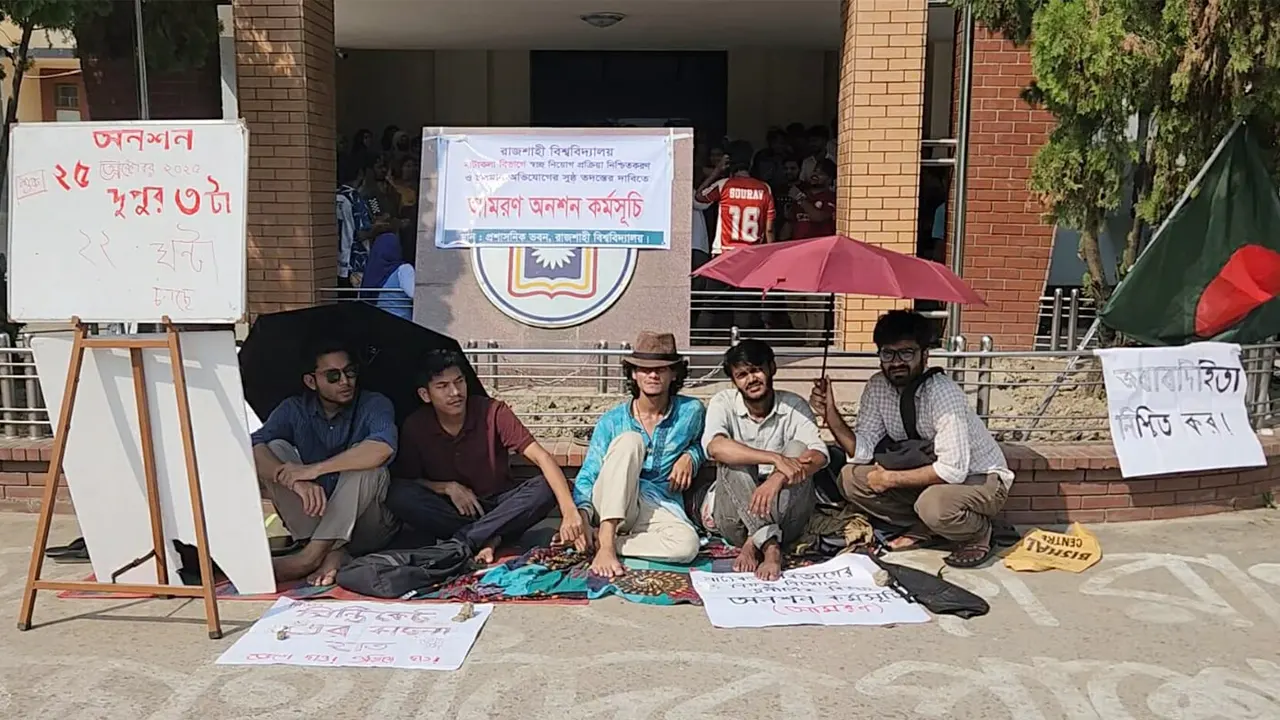 রাজশাহী বিশ্ববিদ্যালয়ের (রাবি) চিকিৎসা মনোবিজ্ঞান বিভাগের সভাপতির পদত্যাগ দাবিতে আমরণ অনশনে বসেছেন শিক্ষার্থীরা। এর আগে টানা চার দিন ক্লাস পরীক্ষা বর্জন করে শাটডাউন কর্মসূচি পালন করেন তারা।