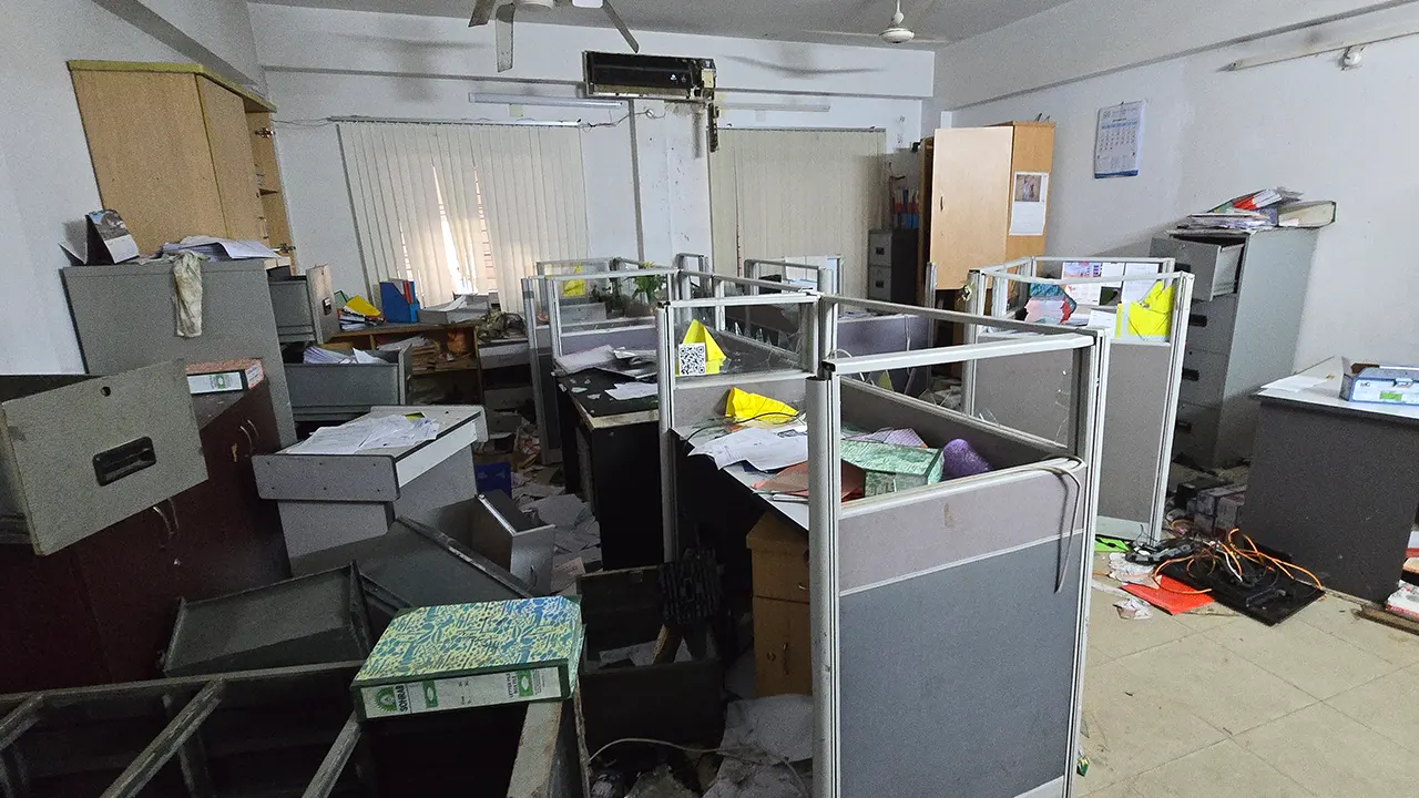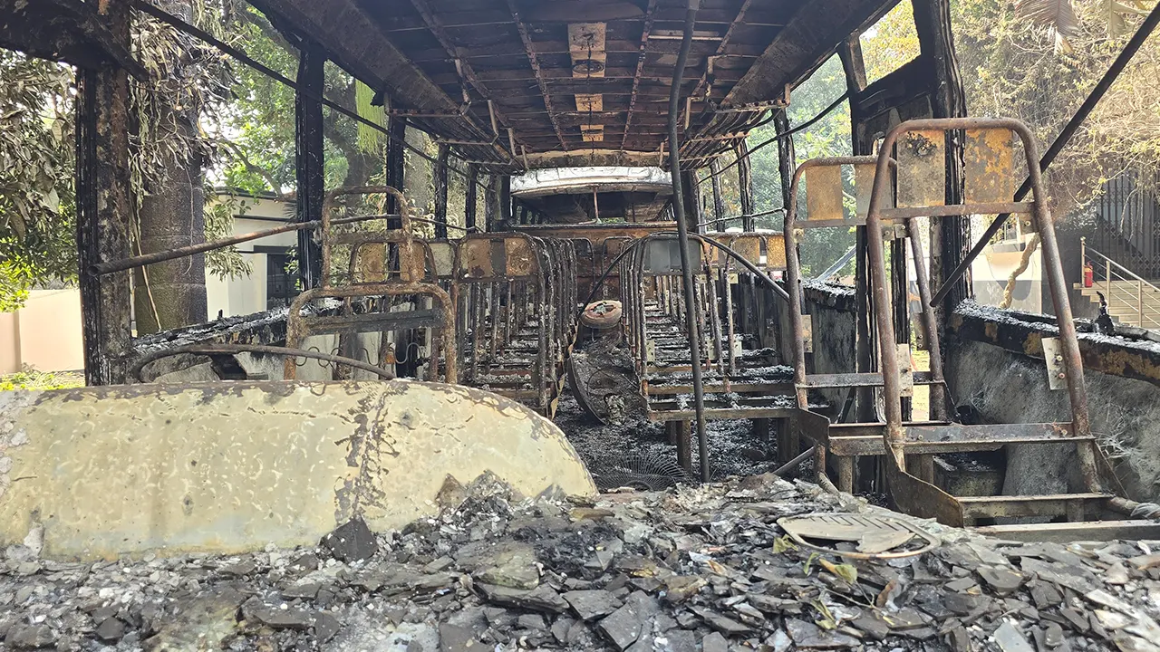 শিক্ষার্থীদের কোলাহলে মুখর থাকা সিটি ইউনিভার্সিটি এখন নীরব ও শূন্য। একসময়ের প্রাণচঞ্চল ক্যাম্পাসজুড়ে এখন ছড়িয়ে আছে ভাঙচুর ও আগুনে পোড়া ধ্বংসস্তূপের নিঃশব্দ সাক্ষ্য। পুড়ে যাওয়া তিনটি বাস ও একটি প্রাইভেট কার, ভাঙা জানালার কাচ, উপাচার্যের কার্যালয়সহ প্রশাসনিক ভবনের আসবাবের ভাঙা টুকরো—সবই যেন রোববার রাতের সংঘর্ষের নির্মমতার প্রমাণ বহন করছে।