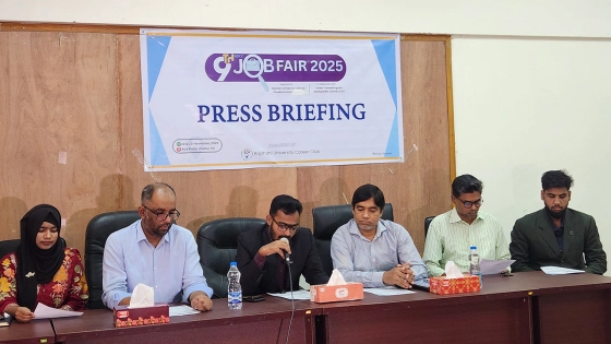 সংবাদ সম্মেলনে সিসিডিসির পরিচালক অধ্যাপক নুরুল মোমেন বলেন, ১৯ ও ২০ নভেম্বর বিশ্ববিদ্যালয়ে ৯ম বারের মতো জব ফেয়ার অনুষ্ঠিত হবে। ক্যারিয়ার কাউন্সেলিং অ্যান্ড ডেভেলপমেন্ট সেন্টারের সহযোগিতায় আয়োজিত এ ফেয়ারের লক্ষ্যে শিক্ষার্থীদের চাকরি বাজারের সঙ্গে সরাসরি যুক্ত করা ও স্কিল ডেভেলপমেন্টে সহায়তা করা। শিক্ষার্থীরা যেন তাদের একাডেমিক ডিসিপ্লিন ও দক্ষতার সঙ্গে মিল থাকা প্রতিষ্ঠানগুলোর স্টল ভিজিট করে সিভি জমা দিতে পারে, সেটাই মূল উদ্দেশ্য। গত বছর তিন হাজারের বেশি সিভি জমা পড়েছিল; এবার আরও বেশি অংশগ্রহণ ও সরাসরি জব প্লেসমেন্টের হবে বলে আশা করছি।