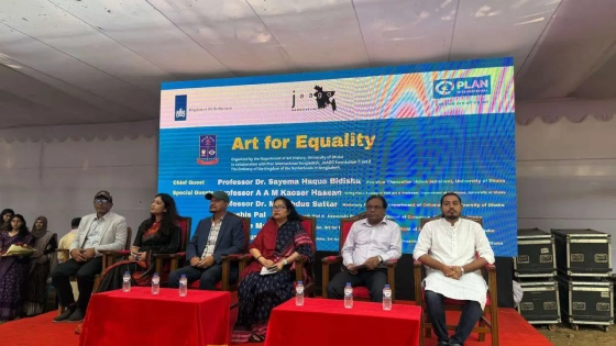 ঢাকা বিশ্ববিদ্যালয়ের চারুকলা অনুষদের শিল্পকলার ইতিহাস বিভাগের তত্ত্বাবধানে ৯টি পাবলিক ও প্রাইভেট বিশ্ববিদ্যালয়ের ৮০ শিক্ষার্থী ও শিল্পীদের অংশগ্রহণে আজ শুরু হয়েছে দুই দিনব্যাপী ‘আর্ট ফর ইক্যুয়ালিটি’ শিল্প কর্মশালা। নেদারল্যান্ডস দূতাবাসের অর্থায়নে প্ল্যান ইন্টারন্যাশনাল বাংলাদেশ ও জাগো ফাউন্ডেশন ট্রাস্টের যৌথ বাস্তবায়নে ৪ বছর মেয়াদী সমতায় তারুণ্য-ইয়ুথ ফর ইক্যুয়ালিটি প্রকল্পের আওতায় কর্মশালাটির আয়োজন করা হয়। কর্মশালাটি শেষ হবে আগামীকাল শনিবার সন্ধ্যায়।