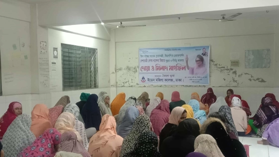 রোববার (৩০ নভেম্বর) বাদ মাগরিব ছাত্রদল নেত্রী তৈয়বা ত্বাহার উদ্যোগে কলেজের হজরত রাবেয়া বশরী হলে এ মাহফিল অনুষ্ঠিত হয়। এতে কলেজের ছয়টি হলের শিক্ষার্থী ও শিক্ষকরা অংশগ্রহণ করেন।