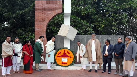 পরে প্রশাসনিক ভবনের সামনে থেকে একটি শোভাযাত্রা বের হয়ে শহীদ মিনারে গিয়ে শেষ হয়।