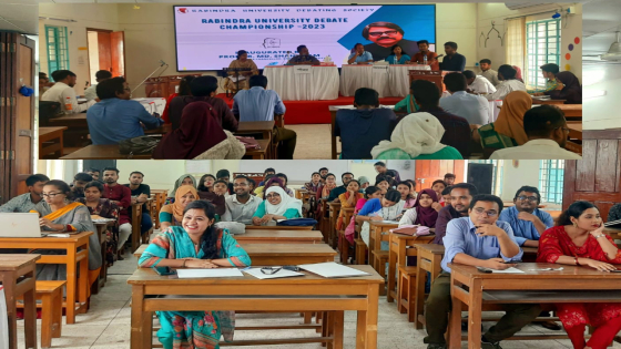 সিরাজগঞ্জের শাহজাদপুরে বিশ্বকবি রবীন্দ্রনাথ ঠাকুরের নামে প্রতিষ্ঠিত রবীন্দ্র বিশ্ববিদ্যালয়ে ‘রবীন্দ্র ইউনির্ভাসিটি ২য় আন্তঃবিভাগ ডিবেট চ্যাম্পিয়নশিপ-২০২৩’-এর উদ্বোধন অনুষ্ঠিত হয়েছে। শুক্রবার (২৩ সেপ্টেম্বর) সকাল ১০টায় বিশ্ববিদ্যালয়ের টেগোর লেকচার থিয়েটারে আন্তঃবিভাগ ডিবেট চ্যাম্পিয়নশিপ ২০২৩-এর উদ্বোধন করা হয়।