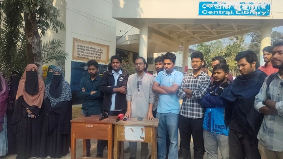 এদিকে বুধবার (২১ জানুয়ারি) বেলা সাড়ে ১২টার দিকে বিশ্ববিদ্যালয়ের কেন্দ্রীয় গ্রন্থাগার ভবনের সামনে সংবাদ সম্মেলন করেন আন্দোলনকারী শিক্ষার্থীরা।