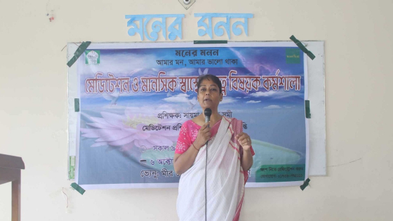 দিনব্যাপী অনুষ্ঠিত এই কর্মশালায় তিনি মানসিক স্বাস্থ্যের গুরুত্ব ও মেডিটেশনের উপকারিতা নিয়ে আলোচনা করেন। এ ছাড়া কর্মশালায় উপস্থিত শিক্ষার্থীদের মেডিটেশনের প্রশিক্ষণ দেওয়া হয়। এ দিকে মনঃসাংস্কৃতিক অনুষ্ঠান ও মূকাভিনয়ের মাধ্যমে শিক্ষার্থীদের মধ্যে মানসিক স্বাস্থ্যের গুরুত্ব ফুটিয়ে তোলা হয়।