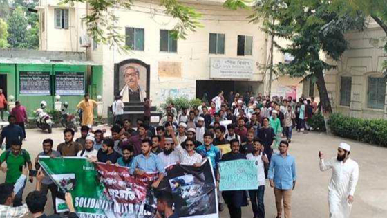 ফিলিস্তিনের গাজায় ইসরায়েলের হামলার প্রতিবাদ জানিয়ে বিক্ষোভ মিছিল ও সমাবেশ করেছেন জগন্নাথ বিশ্ববিদ্যালয়ের সাধারণ শিক্ষার্থীরা।