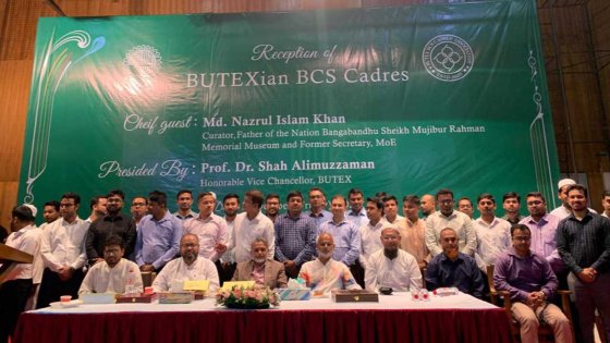 বাংলাদেশ টেক্সটাইল বিশ্ববিদ্যালয়ে (বুটেক্স) বাংলাদেশ সিভিল সার্ভিসে ক্যাডার পদে কর্মরত এবং ৪১তম বিসিএস এ নিয়োগের জন্য সুপারিশপ্রাপ্ত বুটেক্স গ্র্যাজুয়েটদের সংবর্ধনা দেওয়া হয়। শুক্রবার (২০ অক্টোবর) রাতে বিশ্ববিদ্যালয়ের অডিটোরিয়ামে বিসিএস ক্যাডারদের ক্রেস্ট দিয়ে সংবর্ধনা দেওয়া হয়। পাশাপাশি বুটেক্স বিসিএস ক্যাডার অ্যাসোসিয়েশনের উদ্বোধন করা হয়।