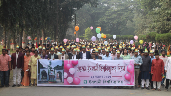 পরে সেখানে বেলুন উড়িয়ে দিবসটির উদ্বোধন করা হয়। এরপর সেখান থেকে বর্ণাঢ্য র্যালি বের করে প্রশাসন। র্যালিটি ক্যাম্পাসের গুরুত্বপূর্ণ সড়ক প্রদক্ষিণ করে বিশ্ববিদ্যালয়ের মৃত্যুঞ্জয়ী মুজিব ম্যুরাল চত্বরে গিয়ে শেষ হয়। এরপর ম্যুরালে পুষ্পস্তবক অর্পণ করে বিশ্ববিদ্যালয় তারা।