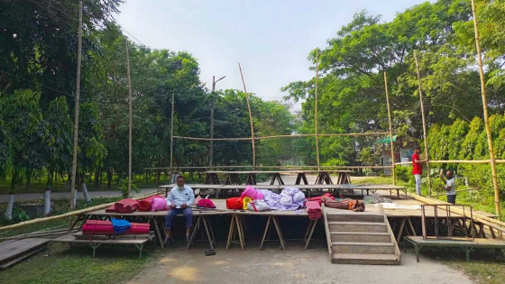 সরেজমিন দেখা যায়, বিশ্ববিদ্যালয়ের পরিচিত দেবদারু রোডে বিতর্কমঞ্চ তৈরি করা হয়েছে। সড়কটি দিয়ে বিশ্ববিদ্যালয়ের আবাসিক হল, কেন্দ্রীয় লাইব্রেরি, ক্যাফেটেরিয়ায় চলাচল করা হয়। বর্তমানে সড়কটি বন্ধ থাকায় উল্টো পথে অনেক ঘুরে যাতায়াত করতে হওয়ায় ভোগান্তির শিকার সাধারণ শিক্ষার্থীরা। এ নিয়ে ক্ষোভ প্রকাশ করে সামাজিক যোগাযোগমাধ্যমে শিক্ষার্থীদের কড়া সমালোচনা করতে দেখা গেছে।