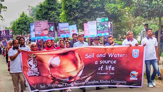 ‘মাটি ও পানি জীবনের উৎস’ এ প্রতিপাদ্যকে সামনে রেখে খুলনা বিশ্ববিদ্যালয়ে র্যালি ও সেমিনার প্রোগ্রামের মধ্য দিয়ে বিশ্ব মৃত্তিকা দিবস-২০২৩ পালিত হয়েছে।