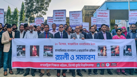 এর আগে বিকেলে বিশ্ববিদ্যালয়ের প্রশাসনিক ভবনের সামনে থেকে উপাচার্য অধ্যাপক ডা. জামাল উদ্দিন ভূঞার নেতৃত্বে একটি র্যালি বের হয়ে কেন্দ্রীয় মিলনায়তনে শেষ হয়। এরপর কেন্দ্রীয় মিলনায়তনে অধ্যাপক ড মো. আবু জাফর বেপারীর সঞ্চালনায় ও গণতান্ত্রিক শিক্ষক পরিষদের সভাপতি অধ্যাপক ড. মো. শহীদুল ইসলামের সভাপতিত্বে মানবাধিকার বিষয়ক একটি আলোচনা সভা অনুষ্ঠিত হয়। এ সময় উপস্থিত ছিলেন বিশ্ববিদ্যালয়ের ছাত্র পরামর্শ ও নির্দেশনা দপ্তরের পরিচালক অধ্যাপক ড. মোহাম্মদ আতিকুজ্জামান, শিক্ষক সমিতির সহসভাপতি অধ্যাপক ড. মাসুদ আলম, প্রক্টর অধ্যাপক ড. মো. মনিরুল ইসলাম, রেজিস্ট্রার বদরুল ইসলামসহ বিভিন্ন অনুষদের শিক্ষক- শিক্ষার্থী, কর্মকর্তা ও সিকৃবি ছাত্রলীগ শাখার নেতৃবৃন্দ।
