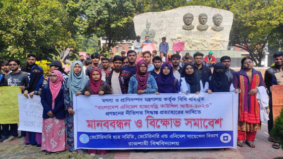 ভেটেরিনারি ছাত্র সমিতির সাধারণ সম্পাদক ও ভেটেরিনারি অ্যান্ড এনিমেল সাইন্সেস বিভাগের শিক্ষার্থী আল আমিন মোল্লা বলেন, গত ১০ ডিসেম্বর মৎস্য ও প্রাণিসম্পদ মন্ত্রণালয়ের সচিব ড. নাহিদ রশিদ তার ব্যক্তিগত ও উদ্দেশ্যপ্রণোদিত একটি সিদ্ধান্ত নিয়েছেন, বাংলাদেশ এনিম্যাল হাজবেন্ডারি কাউন্সিল ২০২৩ বাস্তবায়ন করা হবে। কিন্তু বাংলাদেশের ভেটেরিনারি কাউন্সিল ২০১৯ এর তত্ত্বাবধানে প্রাণিসম্পদ উন্নয়নের অগ্রযাত্রা অব্যাহত আছে। এই অগ্রযাত্রাকে বাধাগ্রস্ত করার জন্য উদ্দেশ্যপ্রণোদিতভাবে নেওয়া এই সিদ্ধান্তের প্রতিবাদ ও নিন্দা জানাচ্ছি।