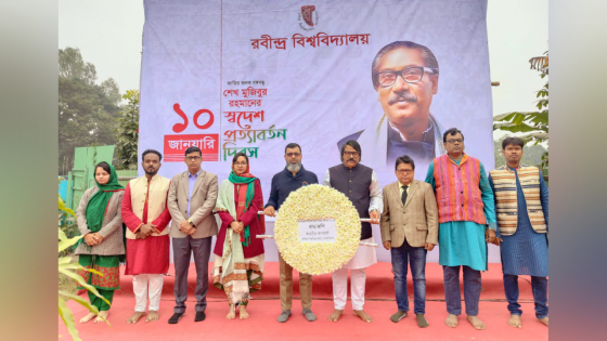 সিরাজগঞ্জেরে শাহজাদপুরে বিশ্বকবির রবীন্দ্র বিশ্ববিদ্যালয়ে যথাযোগ্য মর্যাদায় পালিত হয়েছে জাতির পিতা বঙ্গবন্ধু শেখ মুজিবুর রহমানের স্বদেশ প্রত্যাবর্তন দিবস-২০২৪। ১০ জানুয়ারি দিবসটি উপলক্ষে জাতির পিতার প্রতিকৃতিতে শ্রদ্ধাঞ্জলি অর্পণ করেন উপাচার্য প্রফেসর ড. মো. শাহ্ আজম এবং রবীন্দ্র বিশ্ববিদ্যালয় শিক্ষক সমিতি।