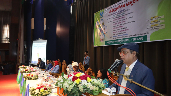 অনুষ্ঠানের প্রধান অতিথি বিশ্ববিদ্যালয় মঞ্জুরি কমিশনের সদস্য অধ্যাপক ড. মো. আবু তাহের বলেন, বর্তমান সমাজের সবচেয়ে বড় চ্যালেঞ্জ খাদ্য ও পুষ্টি নিরাপত্তা নিশ্চিত করা। খাদ্যশস্য, ফলমূল, বীজ উৎপাদনে বাকৃবির অবদান অনস্বীকার্য। আমি আশা করছি আজকের নবীনরা ভবিষ্যতে প্রতিষ্ঠিত হবে এবং চতুর্থ শিল্প বিপ্লবের ধারায় দেশকে এগিয়ে নিয়ে যাবে। শিক্ষক হিসেবে আমরা তখনই গর্ববোধ করবো, যখন আমাদের শিক্ষার্থীরা বিশ্ববাসীর কাছে দেশ এবং কৃষির সাফল্য তুলে ধরবে।
