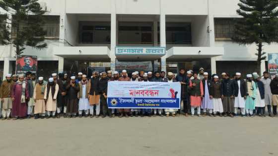 এ দিকে সংবাদ মাধ্যমে বিষয়টি প্রকাশিত হলে ঘটনার প্রতিবাদে মানববন্ধন করেছে ইসলামী ছাত্র আন্দোলন বাংলাদেশ। রোববার (২১ জানুয়ারি) বিশ্ববিদ্যালয়ের প্রশাসন ভবনের সামনে এটি অনুষ্ঠিত হয়।