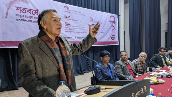 বুধবার (২৪ জানুয়ারি) দুপুরে রাজশাহী বিশ্ববিদ্যালয়ে ‘শতবর্ষে আবুল মনসুর আহমদের সাংবাদিকতার প্রাসঙ্গিকতা’ শীর্ষক আলোচনা সভায় এসব কথা বলেন তিনি। বিশ্ববিদ্যালয়ের শহীদ সুখরঞ্জন সমাদ্দার ছাত্র-শিক্ষক সাংস্কৃতিক কেন্দ্রে আলোচনা সভাটি অনুষ্ঠিত হয়।