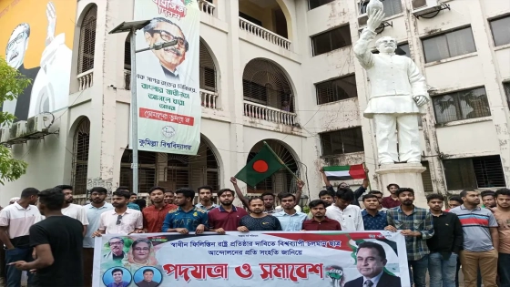 বিশ্ববিদ্যালয়ের শহীদ ধীরেন্দ্রনাথ দত্ত হল শাখা ছাত্রলীগের দপ্তর সম্পাদক মহসিন জামিল বলেন, ইসরায়েল মধ্যপ্রাচ্যের দখলদার অবৈধ রাষ্ট্র। যারা ফিলিস্তিনের ওপর সবসময় অত্যাচার-নির্যাতন এবং গণহত্যা চালিয়ে যাচ্ছে। এর প্রতিবাদে সম্প্রতি যুক্তরাষ্ট্রের কলম্বিয়া ইউনিভার্সিটিতে শিক্ষার্থীরা আন্দোলন করলে সেটি ছাত্রসমাজের মধ্যে ছড়িয়ে যায়। বাংলাদেশ সরকার সবসময় নির্যাতিতদের পক্ষে কথা বলে, সেই ধারাবাহিকতায় ছাত্রলীগের আজকের পদযাত্রা ও সমাবেশ।