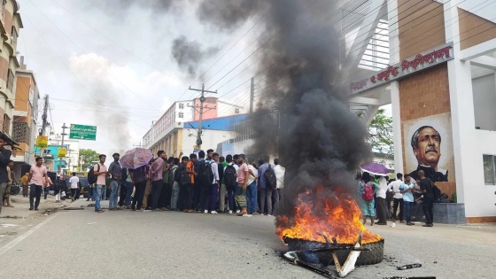 বাসে যশোর বিজ্ঞান ও প্রযুক্তি বিশ্ববিদ্যালয়ের (যবিপ্রবির) এক ছাত্রীকে শ্লীলতাহানির ঘটনায় আবারও উত্তাল ক্যাম্পাস। ২৪ ঘণ্টার মধ্যে অভিযুক্তকে গ্রেপ্তার করতে না পারাসহ আরও ৬ দফা দাবিতে টায়ার জ্বালিয়ে সড়ক অবরোধ করেছে শিক্ষার্থীরা।