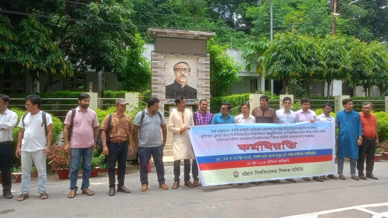 পেনশন সংক্রান্ত বৈষম্যমূলক প্রজ্ঞাপন প্রত্যাহার, প্রতিশ্রুত সুপার গ্রেডে বিশ্ববিদ্যালয়ের শিক্ষকদের অন্তর্ভুক্তিকরণ ও শিক্ষকদের জন্য স্বতন্ত্র বেতন স্কেল প্রবর্তনের দাবিতে বাংলাদেশ বিশ্ববিদ্যালয় শিক্ষক সমিতি ফেডারেশনের আহ্বানে এ কর্মসূচি পালন করা হয়।
