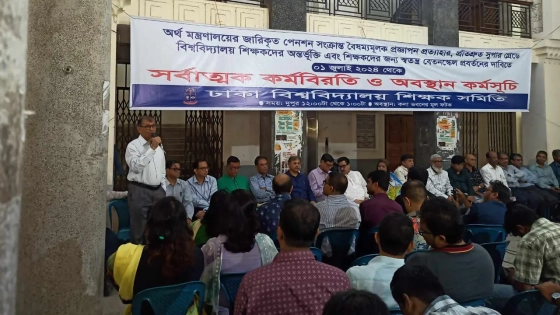 গত ১৩ মার্চ অর্থ মন্ত্রণালয় কর্তৃক জারিকৃত পেনশন (প্রত্যয় স্কিম)-সংক্রান্ত ‘বৈষম্যমূলক প্রজ্ঞাপন’ বাতিলের দাবিতে সর্বাত্মক পূর্ণদিবস কর্মবিরতি পালন করেই যাচ্ছে ঢাকা বিশ্ববিদ্যালয়ের (ঢাবি) কর্মকর্তা-কর্মচারীরা।