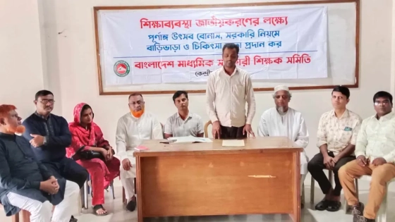 শিক্ষাব্যবস্থা জাতীয়করণের জন্য পূর্ণাঙ্গ উৎসব বোনাস ও সরকারি নিয়মে বাড়ি ভাড়া দেওয়ার দাবি জানিয়েছে বাংলাদেশ মাধ্যমিক সহকারী শিক্ষক সমিতি।