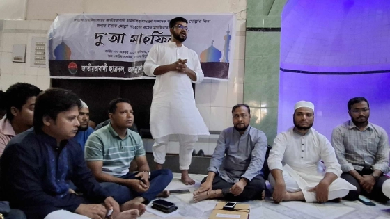 জগন্নাথ বিশ্ববিদ্যালয় (জবি) শাখা ছাত্রদলের সাধারণ সম্পাদক সুজন মোল্লার বাবা ইসাক মোল্লার মৃত্যুতে দোয়া মাহফিল অনুষ্ঠিত হয়েছে।