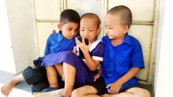 বৃহস্পতিবার (১০ আগস্ট) জেলার কমলগঞ্জ উপজেলার রানীবাজার সরকারি প্রাথমিক বিদ্যালয় বারান্দায় শিশুশ্রেণির তিনজন শিক্ষার্থীকে মোবাইল নিয়ে ব্যস্ত থাকতে দেখা যায়।