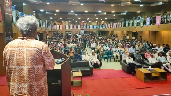 বুয়েটের সাবেক এই অধ্যাপক বলেন, ‘জ্ঞান অর্জনের সঙ্গে বিনয় খুব গুরুত্বপূর্ণ। যে গাছে ফল হয়, সে গাছ নুইয়ে পড়ে। তরুণ প্রজন্মের বিনয়ের অভাব। দুর্বিনীত হওয়া মানে তুমি কিছুই অর্জন করতে পারনি।’